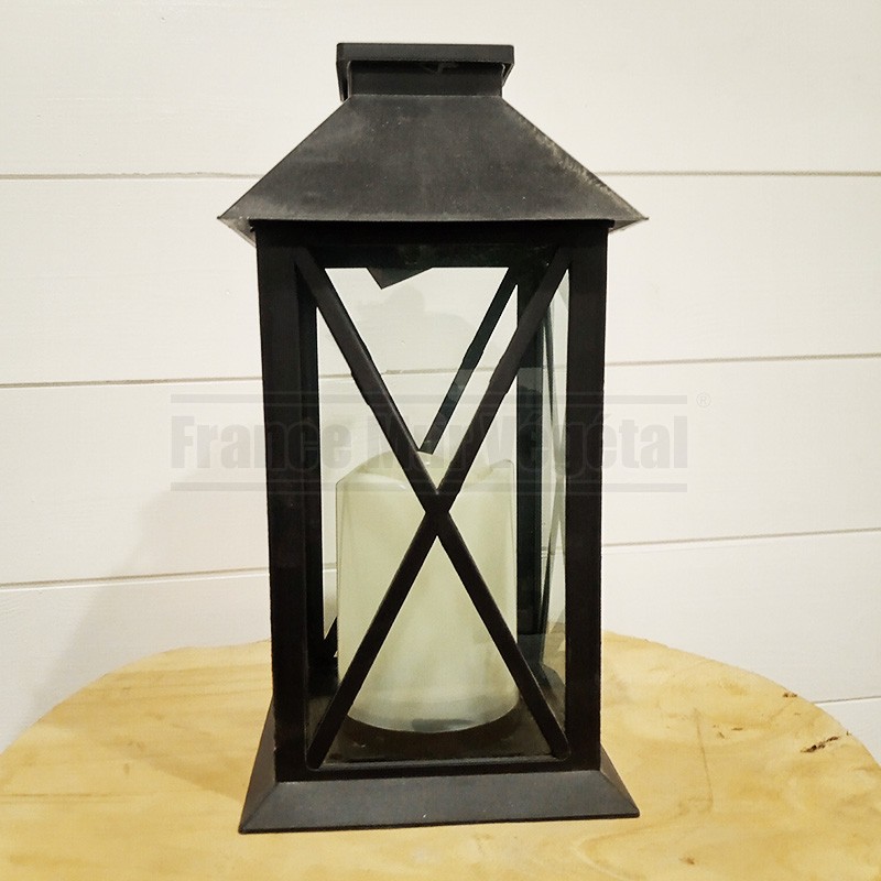 Lanterne effet métal avec bougie LED 14x14x27cm