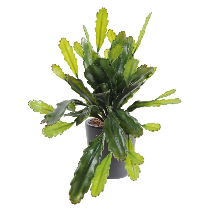 Epiphyllum large artificiel 50cm sur pique, feuillage couleur vert. Plante artificielle idéale pour créer un mur végétal intérieur ou extérieur, un cadre, un tableau végétalisé ou tout autre type de décoration végétale.