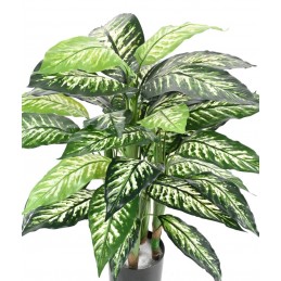 Dieffenbachia artificiel 100cm composé de 5 troncs avec à la base un pot PVC de diamètre 17cm et de 15cm de haut. Cette plante d'intérieur est parfaite pour créer une ambiance tropicale et apaisante, transformant votre espace en un véritable havre de paix.