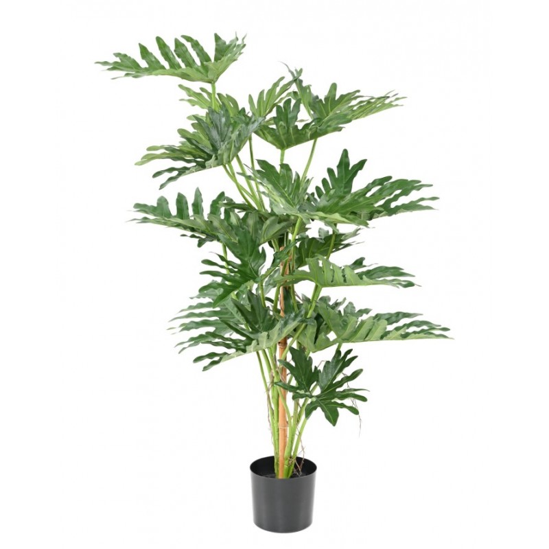 Philodendron selloum artificiel 120cm composé de 20 feuilles de différentes tailles. A la base un pot PVC de diamètre 16.5cm et de 14.5cm de haut. Cette plante d'intérieur est parfaite pour créer une ambiance tropicale et apaisante, transformant votre espace en un véritable havre de paix.